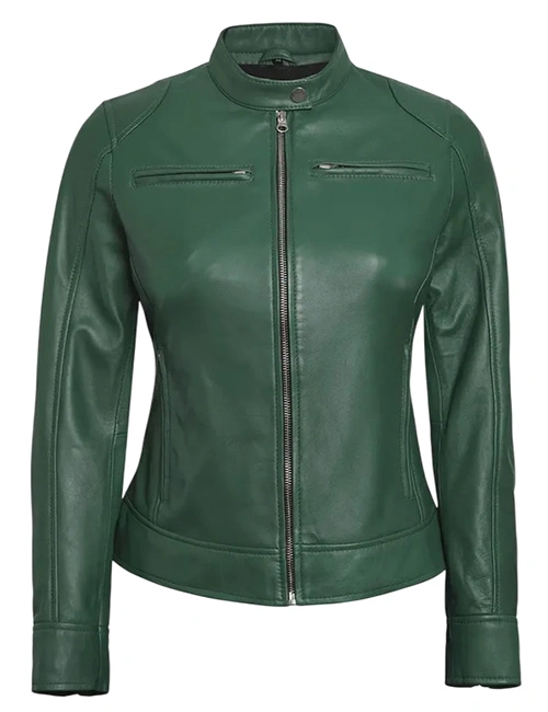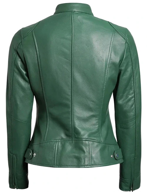 Buy Women Slim Fit Casual Cafe Racer Green Leather Jacket