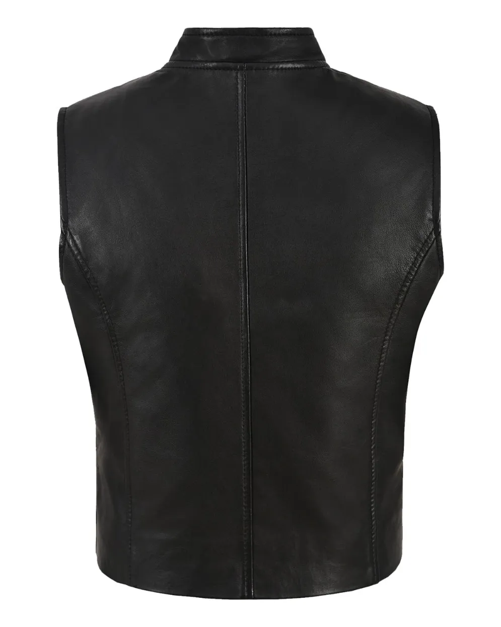 Consider the Women Punk Asymmetrical Zipper Biker Black Genuine Leather Vest. Made from genuine leather, this Womens vest is not only stylish but also built to last. The classic black color gives it an edgy look that fits perfectly with any outfit. Since it’s sleeveless, you can easily layer it over your favorite sweaters or long-sleeve tops. The asymmetrical zipper closure adds a unique twist, making it easy to put on and take off while looking fashionable.