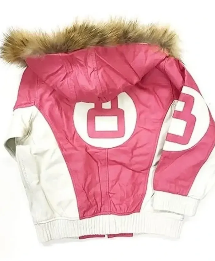 Order Ladies Pink 8 Ball Leather Jacket with Fur Hood – Best Price