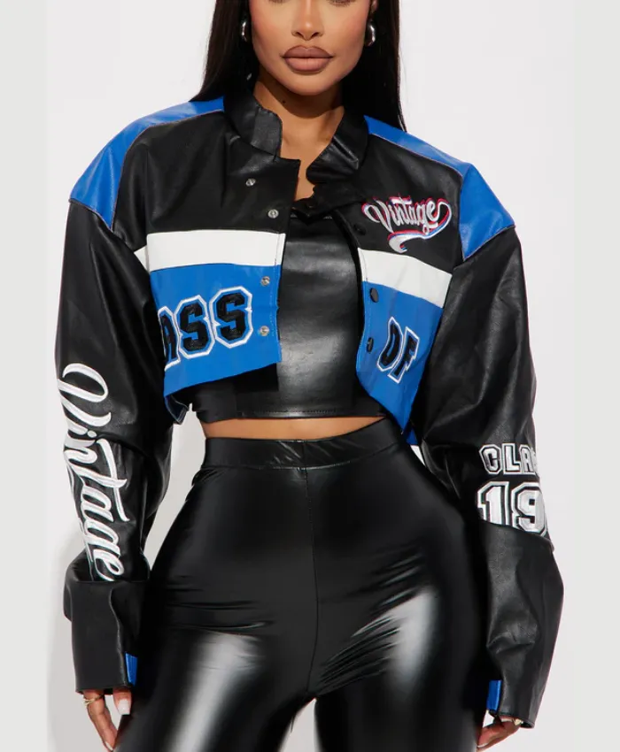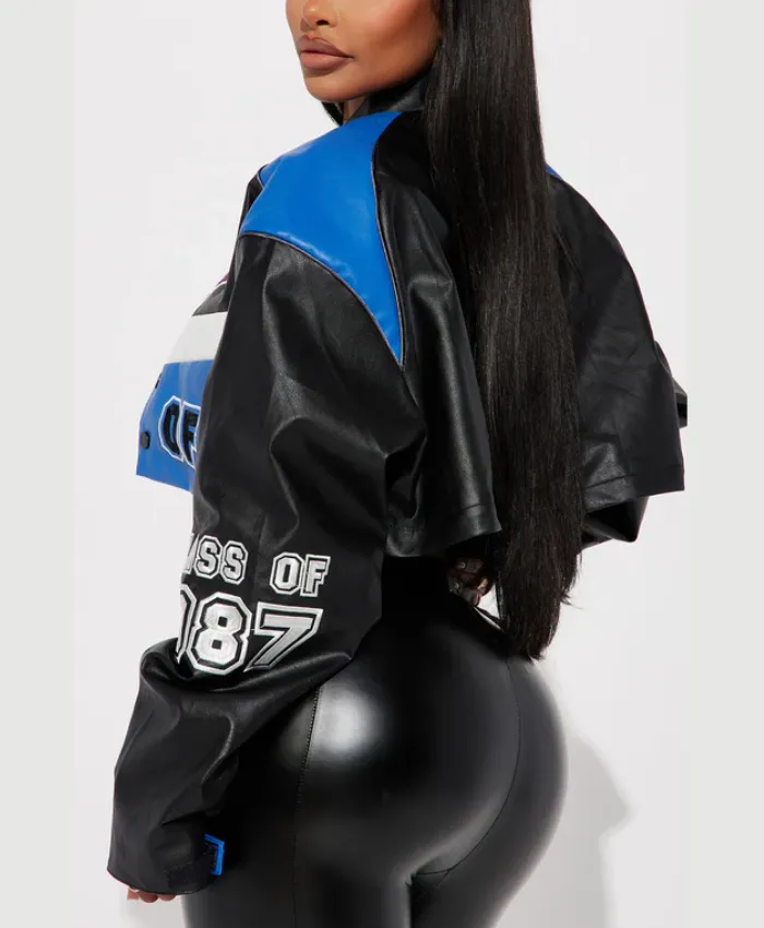 Class Of 87 Blue Cropped Varsity Jacket For Womens