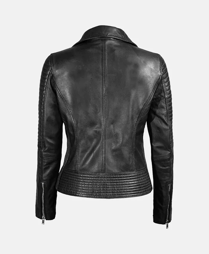 Quilted Black Womens Real Leather Biker Jacket For Sale