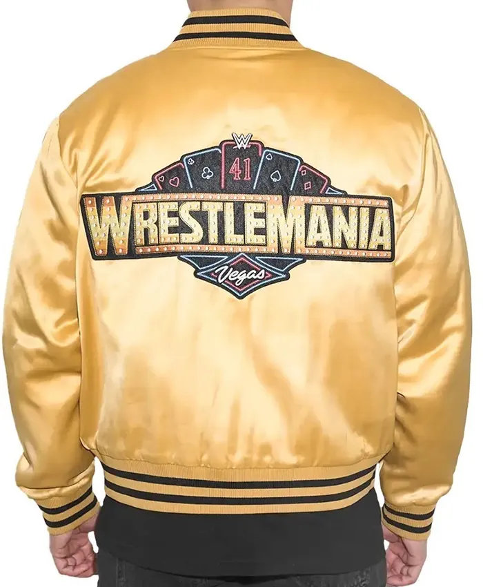 Shop Las Vegas 2025 WWE WrestleMania 41 Gold Satin Bomber Jacket