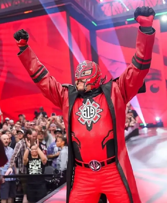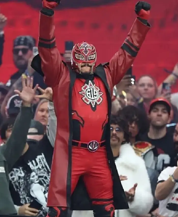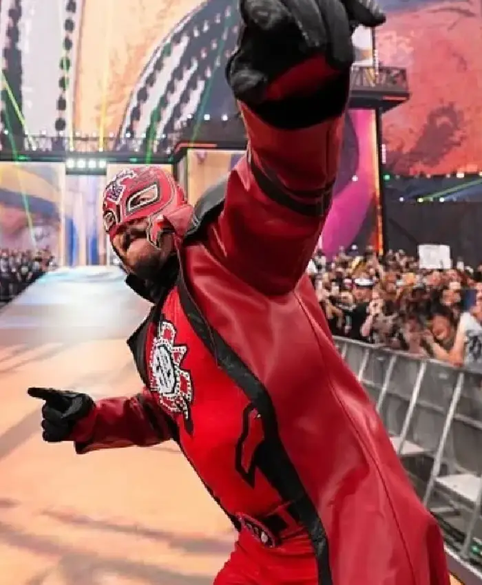 Buy Rey Mysterio WrestleMania 42 Black and Red Leather Trench Coat For Men