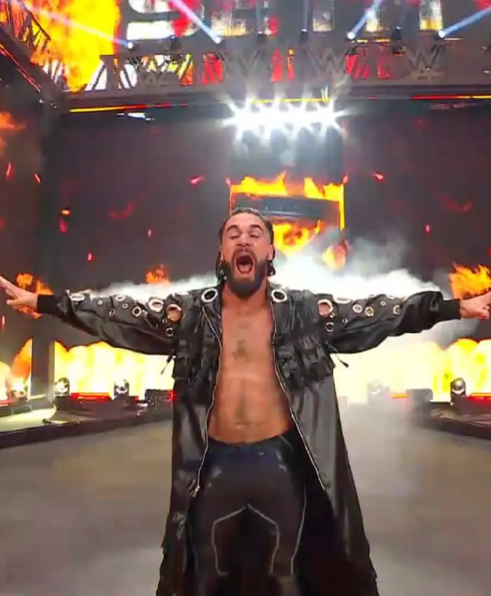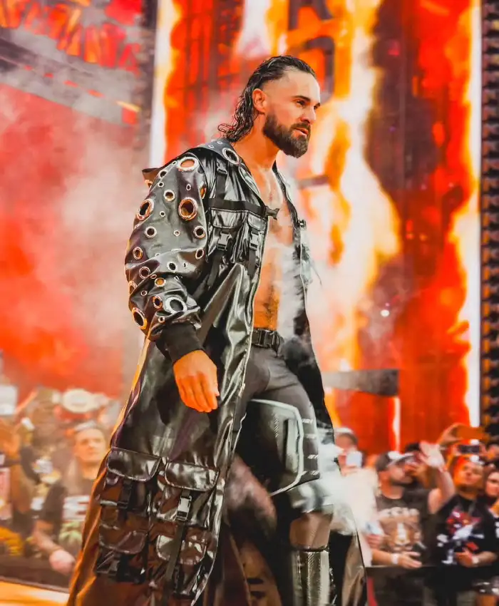 Buy WWE Superstar Seth Rollins 2026 WrestleMania 42 Rings Style Black Leather Trench Coat For Men
