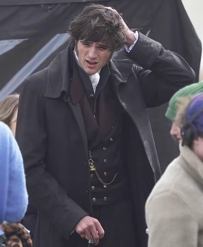 Jacob Elordi Movie Wuthering Heights 2026 Heathcliff Black Wool Coat