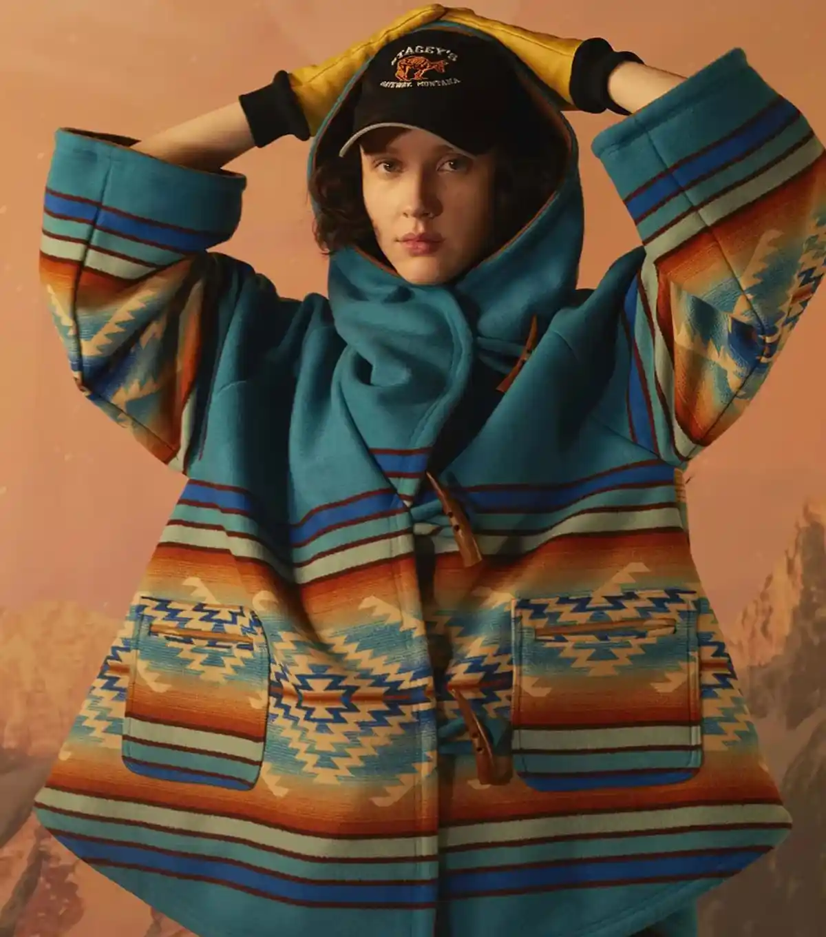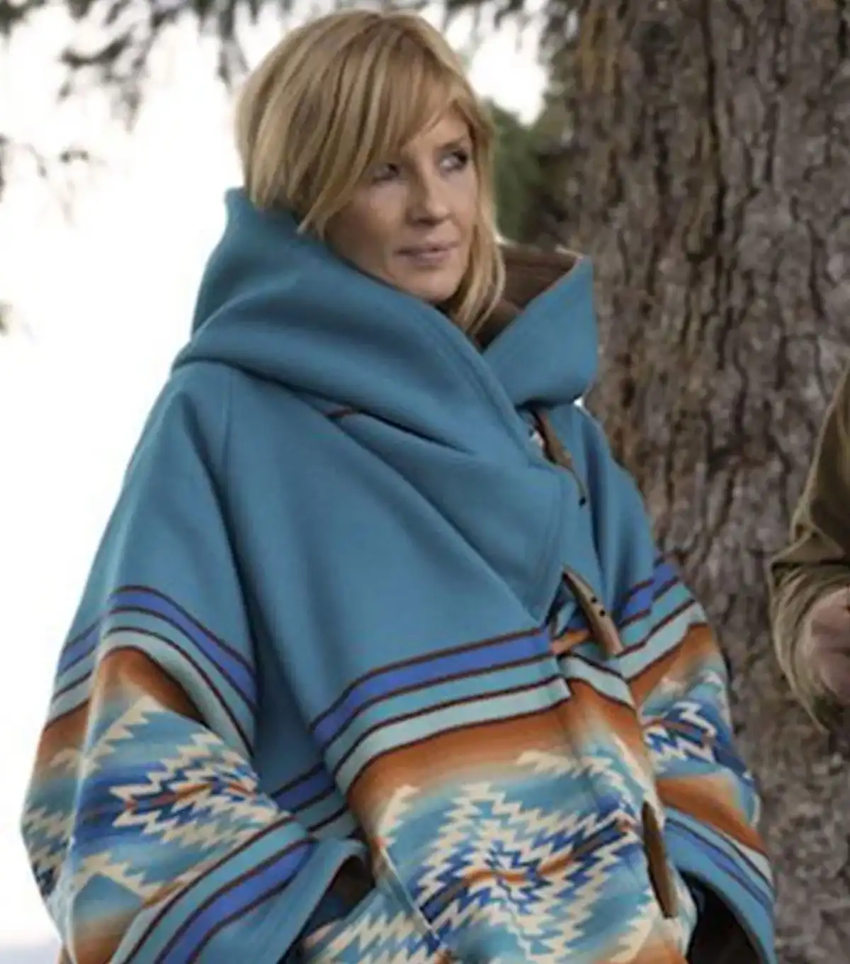 When it comes to memorable television characters, Beth Dutton from Yellowstone is second to none. Fierce, fearless, and unrepentantly bold, Beth has become an apparel icon among her many fans across the world. Beth’s wardrobe never fails to impress, but none stands quite as memorably as her fabulously cozy yet chic Blue Poncho Coat, truly reflective of Beth’s commanding spirit with just the right touch of easygoing Western flair.