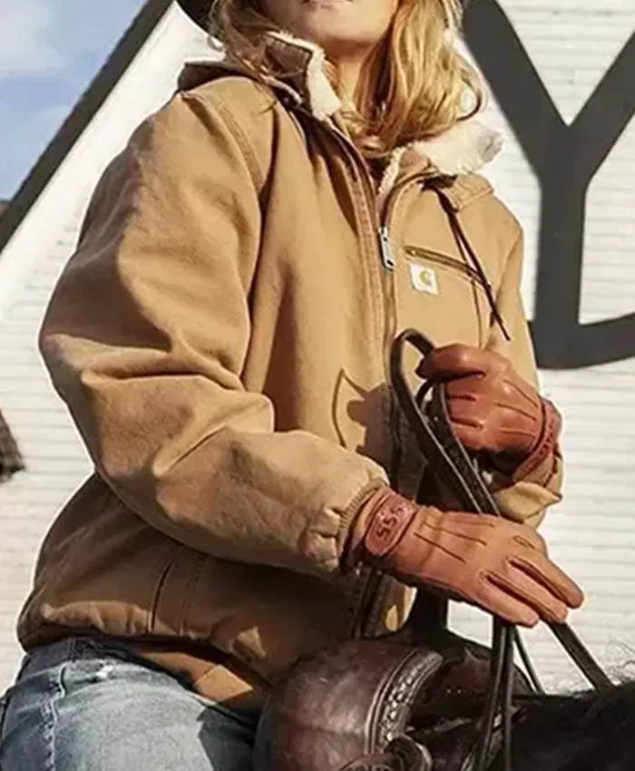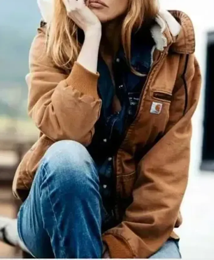 Kelly Reilly TV Series Yellowstone 2024 Beth Dutton Brown Cotton Fabric Hooded Jacket For Womens