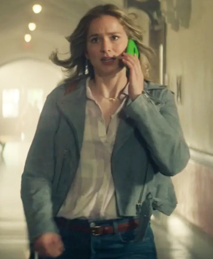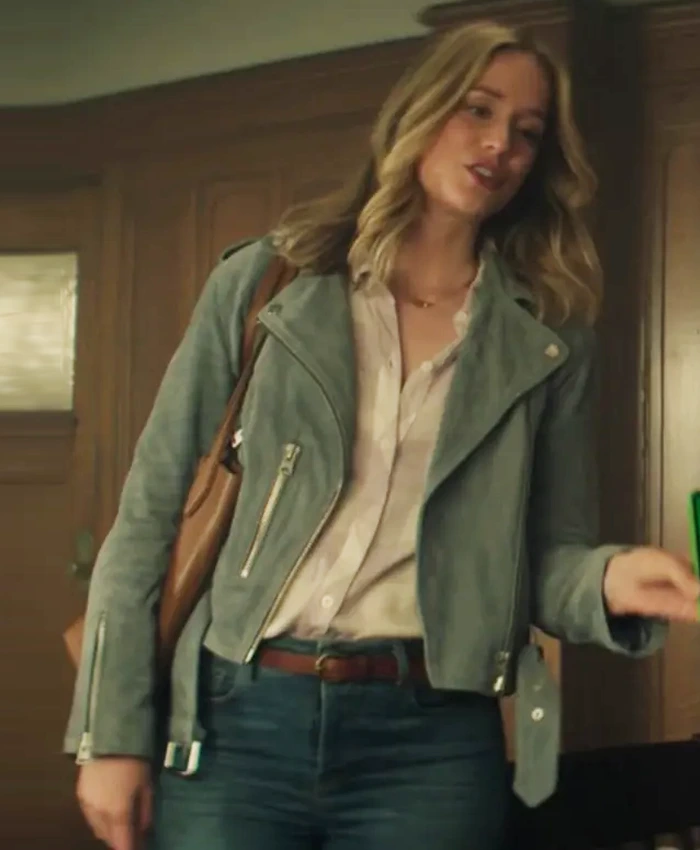 Guinevere Beck TV-Series You 2025 Elizabeth Lail Green Suede Leather Biker Jacket